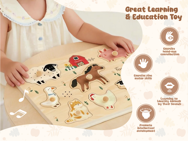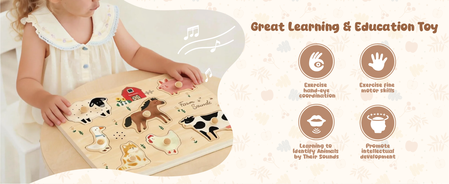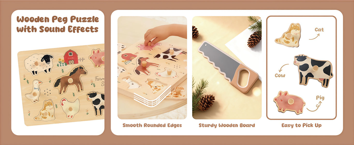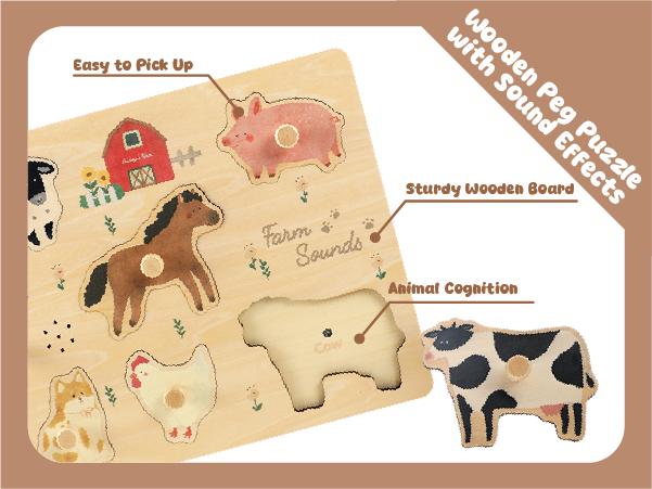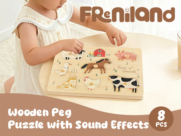 FReniland wooden farm animal sound puzzle for interactive sensory learning play.Age: 18M+